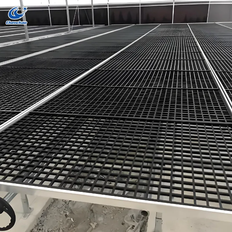 The net surface is flat and simple, and the plant tray is smoothly pushed forward and backward on the seedbed, improving production efficiency. Easy installation, better saving time and manpower in greenhouse construction projects, greatly reducing investment costs.